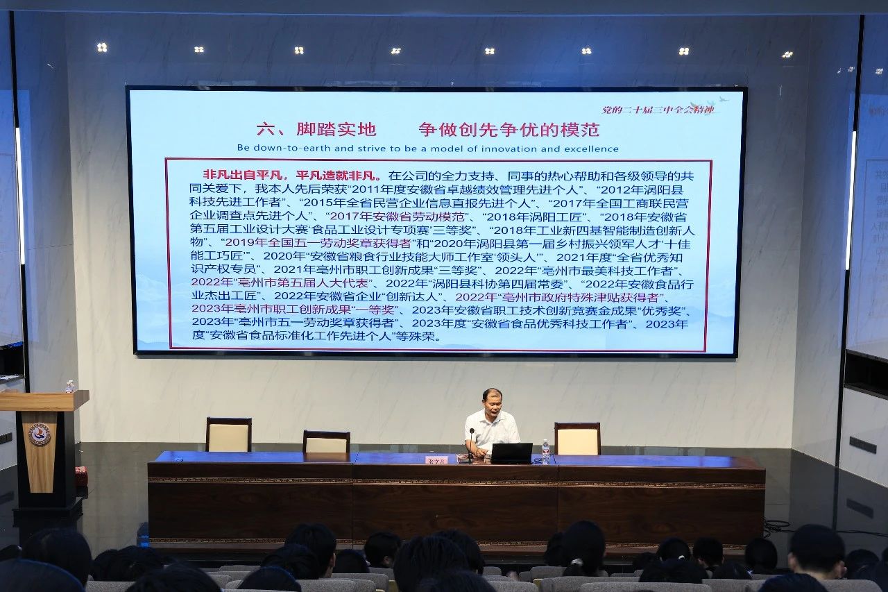 9月27日,渦陽縣總工會勞模宣講團走進校園宣講二十屆三中全會精神。安徽正宇集團全國五一勞動獎獲得者、安徽省勞動模范張文占作為代表進行宣講,助力學子深入學習貫徹習近平新時代中國特色社會主義思想和黨的二十屆三中全會精神。